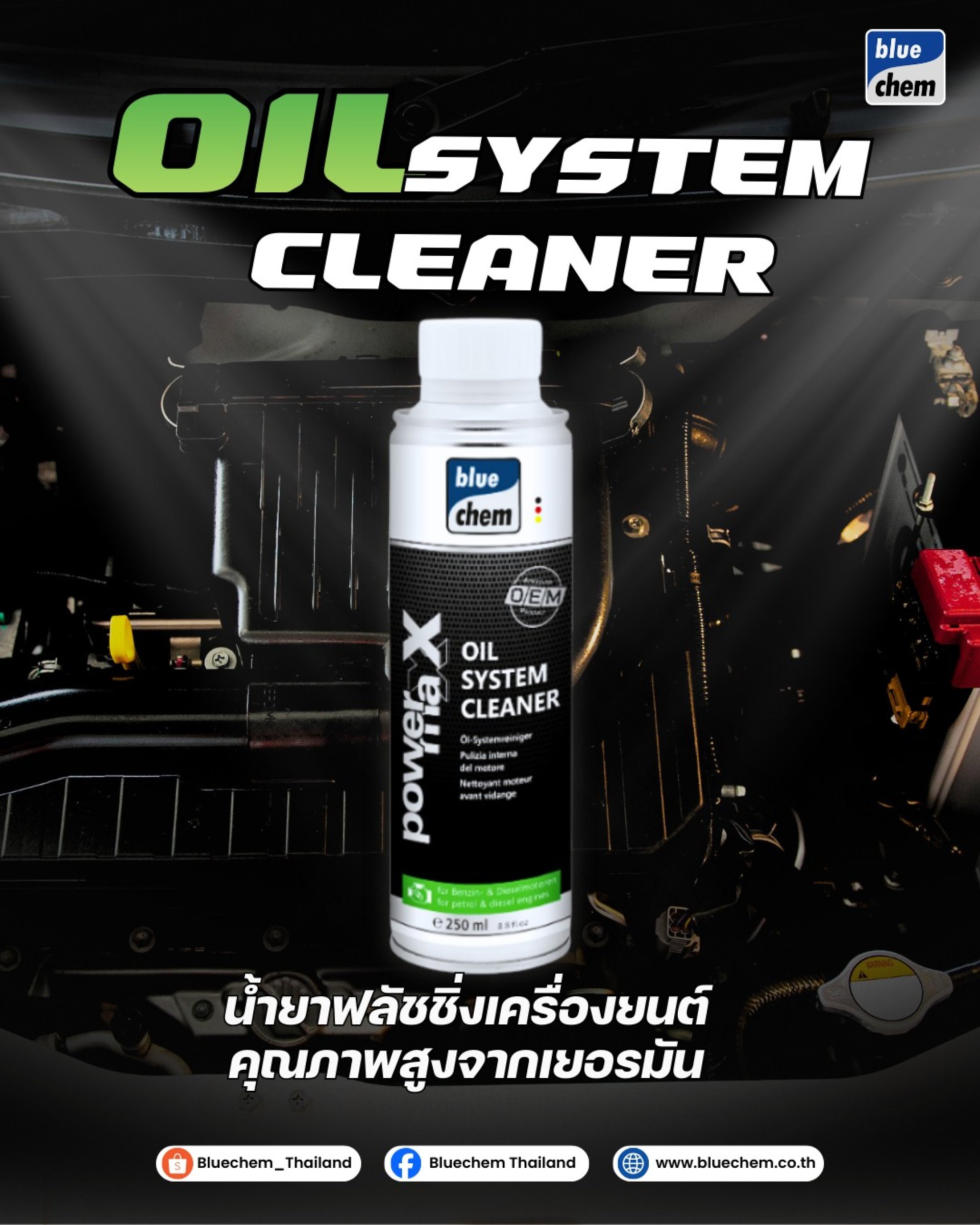 ออกแบบมาเพื่อช่วยทำความสะอาดระบบน้ำมันเครื่อง ลดคราบเขม่าและตะกอนที่สะสมจากการใช้งาน โดยไม่ต้องถอดชิ้นส่วนเครื่องยนต์ เป็นตัวช่วยสำคัญในการดูแลระบบหล่อลื่นภายในเครื่องยนต์ ช่วยลดการสะสมของตะกอน เพิ่มประสิทธิภาพการทำงานของน้ำมันเครื่อง และช่วยยืดอายุการใช้งานของเครื่องยนต์ หากต้องการการดูแลรถอย่างมืออาชีพ Bluechem Oil System Cleaner คือทางเลือกที่ได้รับความไว้วางใจจากอู่และศูนย์บริการ